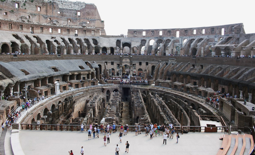 The Colosseum is the best known landmark in Rome. It is also the most gigantic stadium ever built during the Roman Empire era and in fact considered as among the greatest architectural and engineering works of the Romans. The Colosseum is so huge that it can hold as many as 50,000 to 80,000 spectators at a time. This more than 2,000 years old world wonder used to stage gladiatorial battles, political speeches and other public entertainment performances like classical mythology theatrical play.